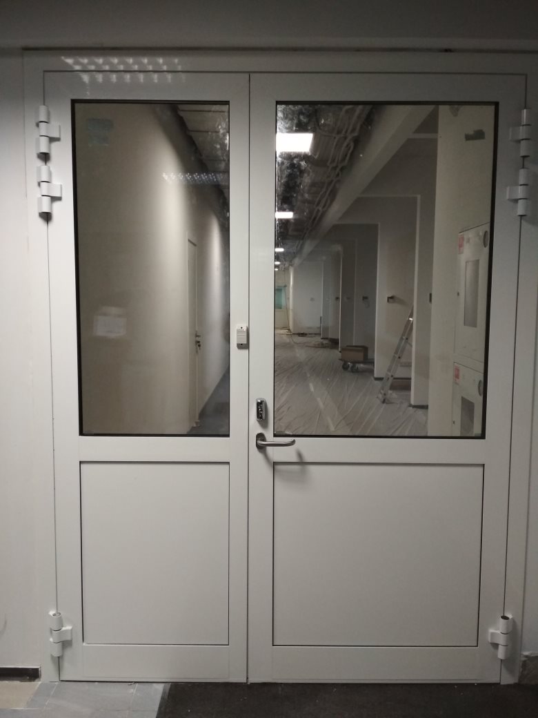 Теплая двустворчатая алюминиевая дверь (полустеклянная)