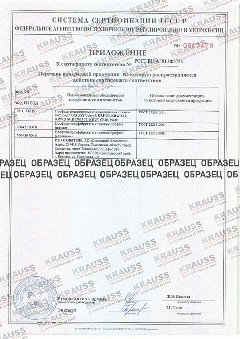 KRAUSS 64мм теплый алюминий. Главная особенность такого профиля – наличие слоя полиамида, усиленного стекловолокном. Это увеличивает теплоизоляционные свойства материала и предотвращает появление “мостиков холода”. Применяется материал в производстве балконных дверных конструкций и входных дверей. Монтажная глубина составляет 64 см.