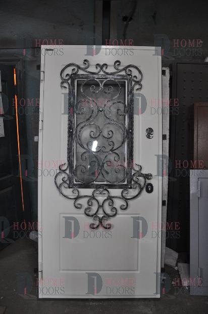 Кроме технических деталей, покупателям предлагается широкий выбор вариаций кованного декора. Ковка может быть установлена со стеклом и без него. Дизайн легко подобрать в зависимости от внешнего оформления фасада: от сдержанных геометрических линий до пышных завитков, листьев и цветов. Все двери с ковкой подходят для монтажа на улице. Они будут надежно защищать дом и внесут в его оформление ноту роскоши.