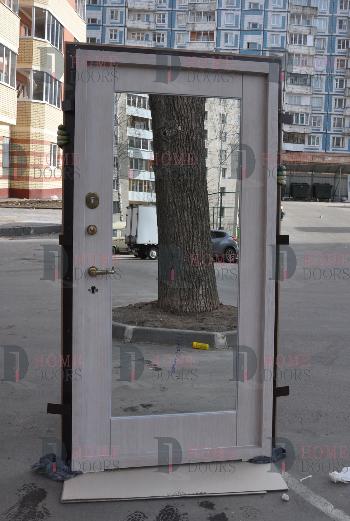 При отделке входных дверей используются стекла разного размера и формы. Они могут закрывать большую часть внутренней поверхности двери, быть короткими или длинными и узкими. Особенно эффектно смотрятся зеркальные вставки в виде арки, с закругленными краями, овальные или зауженные по центру.